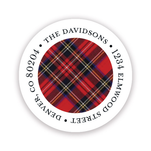 Plaid Tidings Round Address Sticky