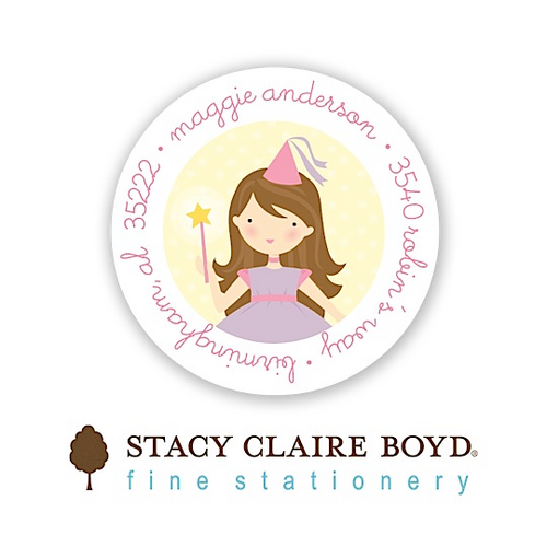 Pretty Princess Brunette Round Address Sticky