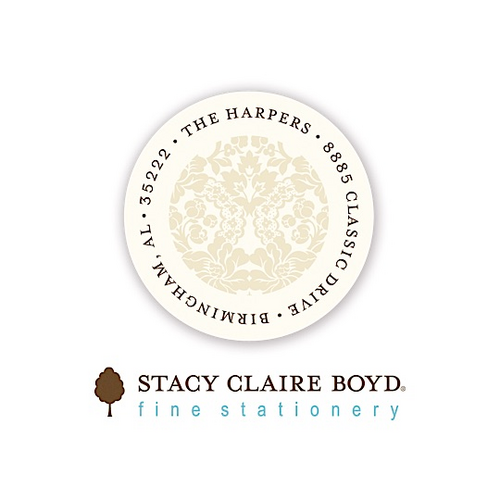 Wedding Bliss Round Address Sticky on White Eggshell (cream)