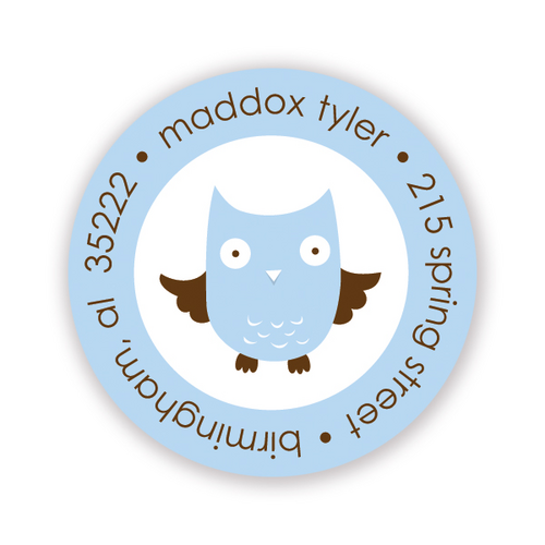 Whooo's Party Blue Round Address Sticky